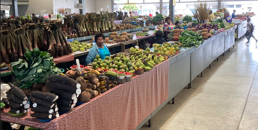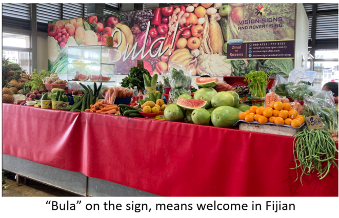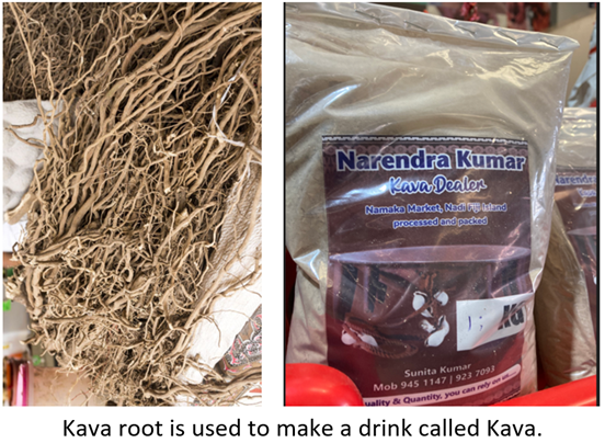 One of the many vegetables at the farmers’ market is cassava. Cassava is a root crop and is ground and extracted to make tapioca starch. Another root crop is kava. Kava is ground into a loose flour and extracted with water to make a drink. The indigenous Fijians drink it at welcoming ceremonies when guests arrive in the village. It is famous for its relaxing, calming properties.