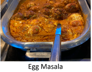 Speaking of eggs, I had a wonderful “Egg Masala” on board the ship the next day. It was made with sauteed eggs tossed in a thick, mildly spicy, onion-and-tomato based red sauce. Photo below. The egg was a nice way to add protein to a tomato sauce.
