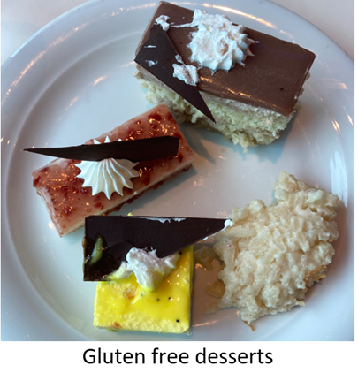 The wonderful breads, pasta, muffins, tortillas, and biscuits must be avoided. I just walk on by. But if I look carefully, I can usually spot a gluten free delight. This ship does a nice job of marking gluten-free items in the cafeteria, so I find myself looking for the little red “gluten-free” label.