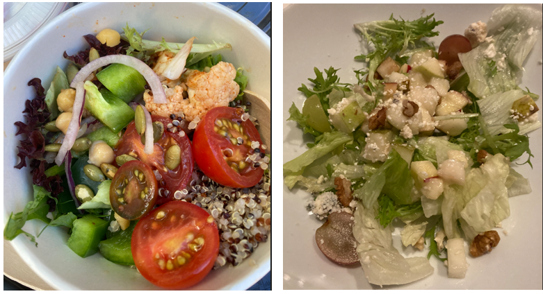 Below are some pictures of all sorts of vegetables, fruits, nuts, and grains that I encountered in my salads (including tomatoes, peppers, onions, but also pears, grapes, pickled cauliflower, quinoa, and garbanzo beans.