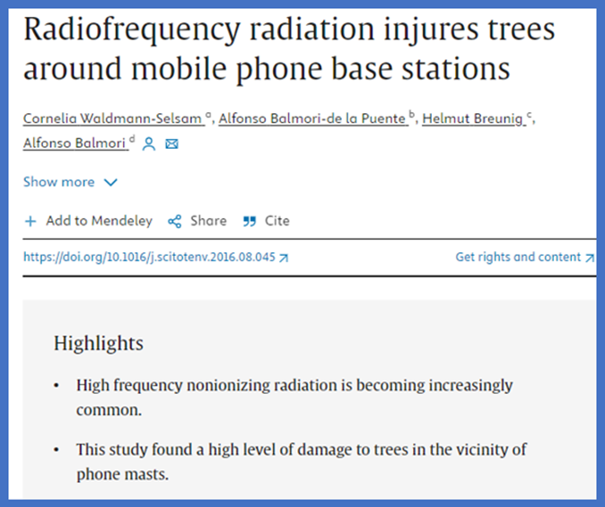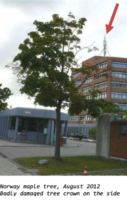 Below is an article documenting injury to trees near mobile phone base stations in Germany.