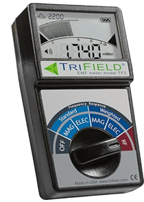 I have a hand-held meter that measures radio frequency. I call it “the convincer” because it gives me an audible sound that ramps up in intensity as I hold it near my cellphone or my modem. It will tell you in no uncertain terms “you are getting too much radiation.”