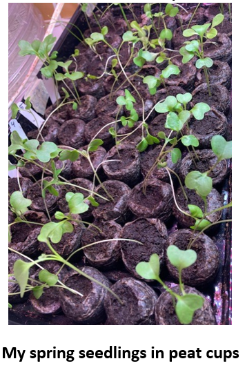 • Start seeds in 4-inch pots (not the little 1-inch peat cups shown in the photo above). The roots need room to grow.