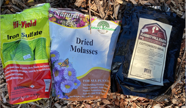 • Add soil amendments such as sulfates (to acidify) molasses (good for soil bacteria) and cottonseed meal (fertilizer). That is what I learned from my county extension agent.