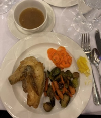 During the Weston Price conference, we learned how to recognize and prepare foods as people did long ago. Even the hotel meals were all prepared in ways that demonstrated to the attendees the dietary principles that Dr. Price discovered. These foods included fermented items, full fat meats and raw dairy products, fresh organic produce, and sourdough breads. The photo shown below includes onion soup (prepared from a bone broth), roasted chicken and vegetables, with fermented carrots and ghee. Yum!