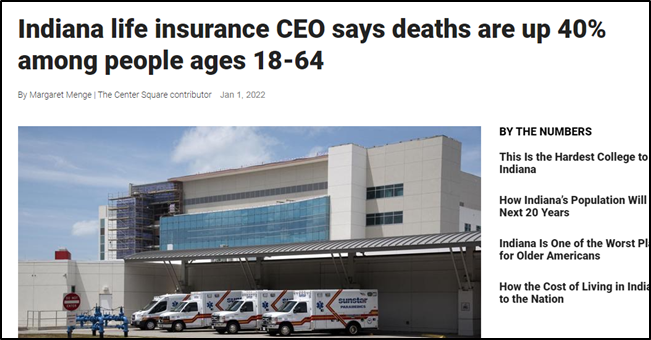The CEO of OneAmerica (Scott Davison) recently came out and said– “We are seeing, right now, the highest death rates we have seen in the history of this business – and not just at OneAmerica. The data is consistent across every player in the business.”