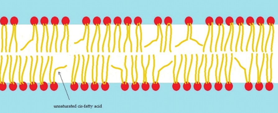 When you consume a lot of vegetable oils (seed oils) the fats in the oil build cell walls that look, well, crazy.  See the picture below. The kinks are inherent in the molecular structure of the polyunsaturated fats-