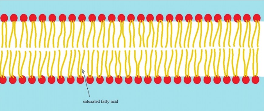 When you consume healthy saturated fats from animal foods, your body is able to build nice cell walls as shown in the diagram below—as saturated fats have a straight configuration.